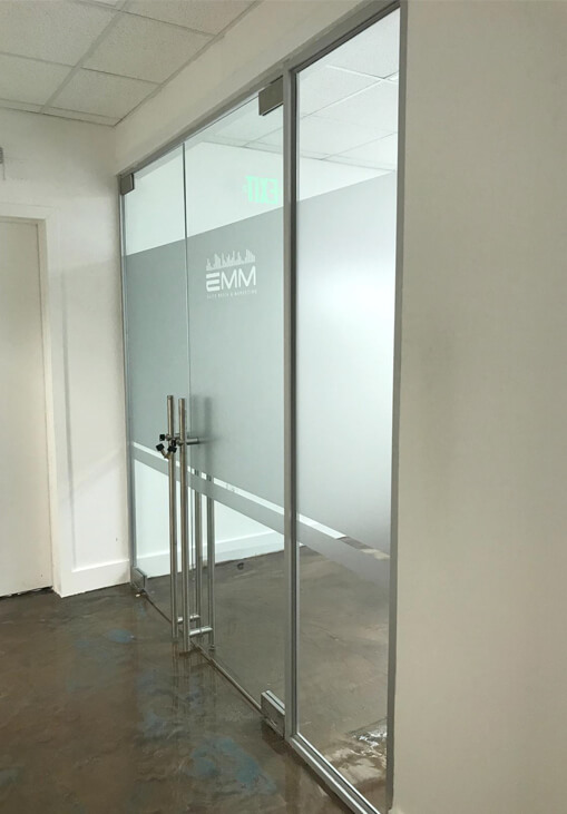 We provide state-of-the-art decorative films for offices throughout Florida. These decorative window film come in various shapes and functions like frosted glass office doors, walls, fixed windows and more.